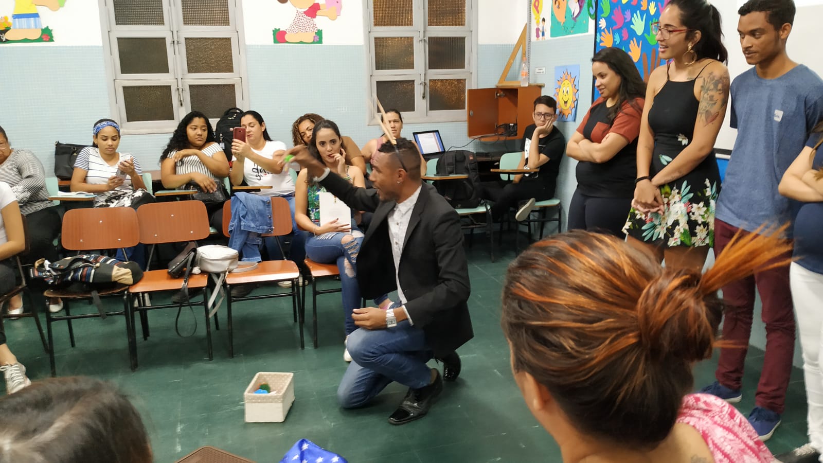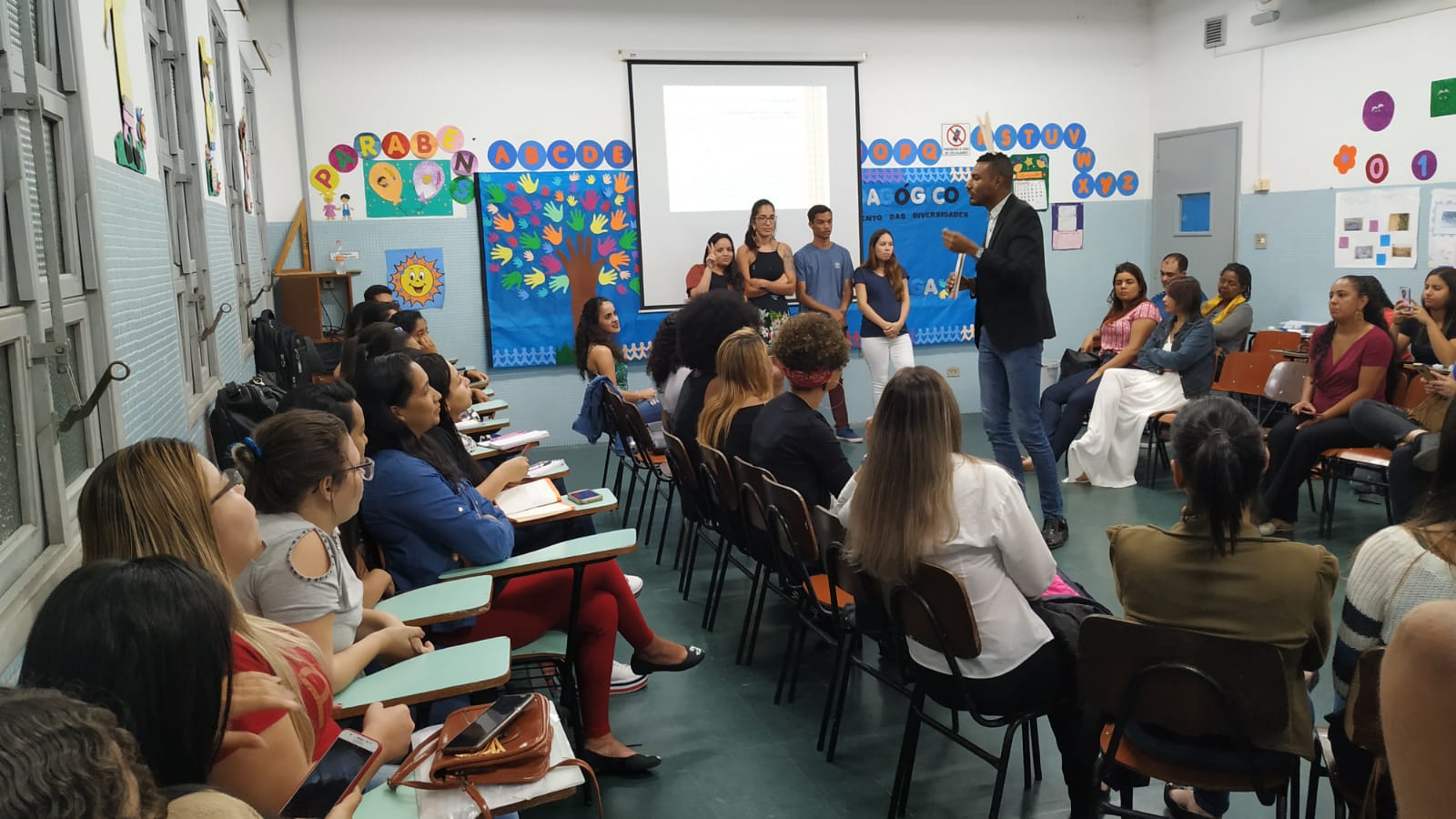 As turmas do 1º A e 5º A prepararam a Palestra e oficina – Primeiros socorros na escola, sob responsabilidade de Kelly Gonzalez de Oliveira. No 2º B, aconteceu a Palestra “Práticas lúdicas para reconhecimento das diversidades na infância”, ministrada pelo Prof. Adriano Gonzaga da Costa.