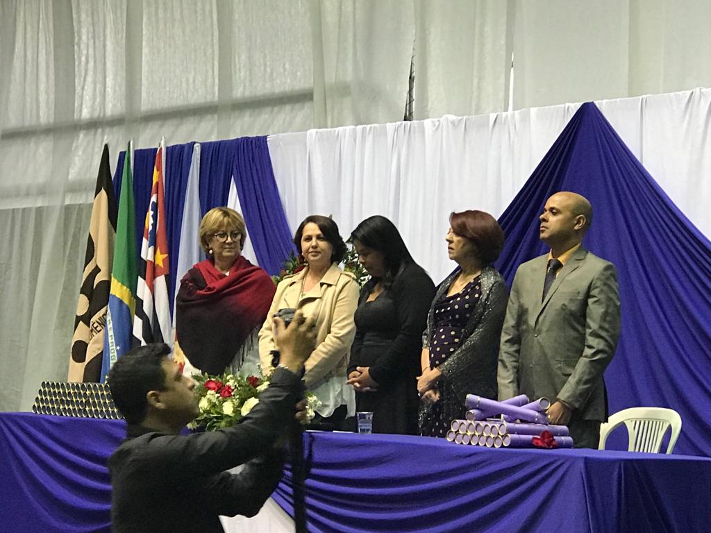 Na primeira parte do dia, os alunos dos cursos de Letras e Pedagogia receberam seus diplomas em solenidade presidida pela coordenadora dos cursos, Profa. Me. Cláudia Gomes. “É sempre um momento de sentimentos misturados, a alegria pela realização de algo importante na vida dos nossos alunos, ao mesmo tempo em que ficamos um pouco tristes por vê-los indo embora após anos de convivência”, afirmou.