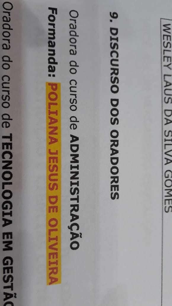 No curso de Administração os professores homenageados foram os Mestres Érico Barzan (Paraninfo) e Gustavo Capociama (Patrono). A oradora da turma a aluna Poliana de Jesus Oliveira. Em Gestão de RH os professores Iolanda De Jesus Silva (Paraninfa) e Prof. Me. Wellington Santos (Patrono) foram os homenageados pela turma que teve a aluna Michelle de Souza Correia como oradora. Para finalizar, no curso de Logística os escolhidos foram professores Anselmo Laurini Sant´anna (Paraninfo),  Edson Oliveira Vieira (Patrono) e convidado especial Prof. Me. Olair Rodrigues Garcia Junior, tendo como orador o aluno Anderson Fernando de Oliveira Brito Novais.